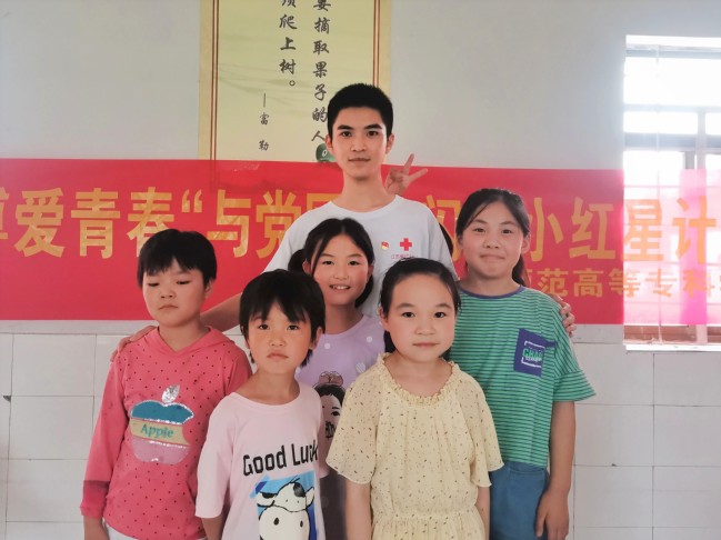 为了更好的服务人民,同时将理论知识运用于实践中,锻炼自己、丰富经验。在暑期,他积极组织开展博爱青春支教活动。支教不仅仅是关心留守儿童,爱心奉献,更是大学生责任感、社会感的一次大检验。课堂上的他,每每看到这么一群,父母常年在外打工,跟随老人留守在家的孩子们,那单纯、可爱、渴求知识的眼神,他便想起从小妈妈常对他说的那句话:要好好学习,将来回报父母,回报社会。他忘记了那是一个酷暑难耐的夏天,忘记了支教前一次次演课的辛苦,他声情并茂地向孩子们讲授着传统文化知识。虽然一次次支教给孩子们带来的知识是有限的,但是对留守儿童的陪伴与学习兴趣的培养,有着极大的意义。课余时间,他将枯燥单调的古诗与现代歌曲结合起来,引起孩子们的兴趣,有的小朋友在台下轻轻拍起手来,有的跟着节奏小声学唱起来,教室慢慢响起了优美的歌声,通过歌曲帮助孩子们和传统文化建立一种亲切感,孩子们在娱乐的同时,感受到传统文化思维和魅力。