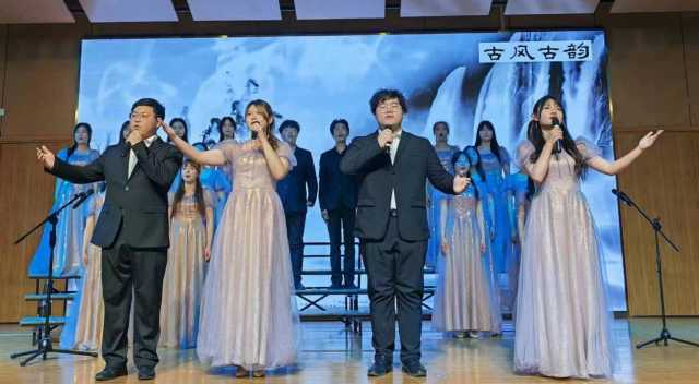 非物质文化遗产,是一个地方珍藏的记忆,是一条历史文脉的传承和延续。通过它们,我们可以感知先人的智慧,感受文化的魅力。海州五大宫调,底蕴深厚、丰富多彩。活动现场,观众在江苏省职业教育非遗“海州五大宫调”“双师型”名师工作室”主持人蒋亚娟的带领下,共同踏入非遗“海州五大宫调”的音乐之旅中。一句句海州方言,一声声碟琴、杯琴敲击的声响,一下下冲击着同学们的心灵。望千古故乡明月,唱一阙历史弦歌,同学们用饱满昂扬的声音朗诵《沁园春·雪》;用精妙绝伦的吟唱展现古代《诗经》里的世界;他们慷慨激昂地表现李白劝酒时的潇洒豪迈、婉转悠扬地体现《知否·知否》的惆怅;曲尽意无穷,挥毫墨生花,同学们将书法、古筝和吟诵相结合,通过《诗韵琴书》,相得益彰地表现出民族文化的精神内涵。吟唱难忘岁月,经典穿越千年,用动起来的非遗文化和经典诗篇,去感受跨越千百年的历史足迹,活动在阵阵掌声中完美落下帷幕。