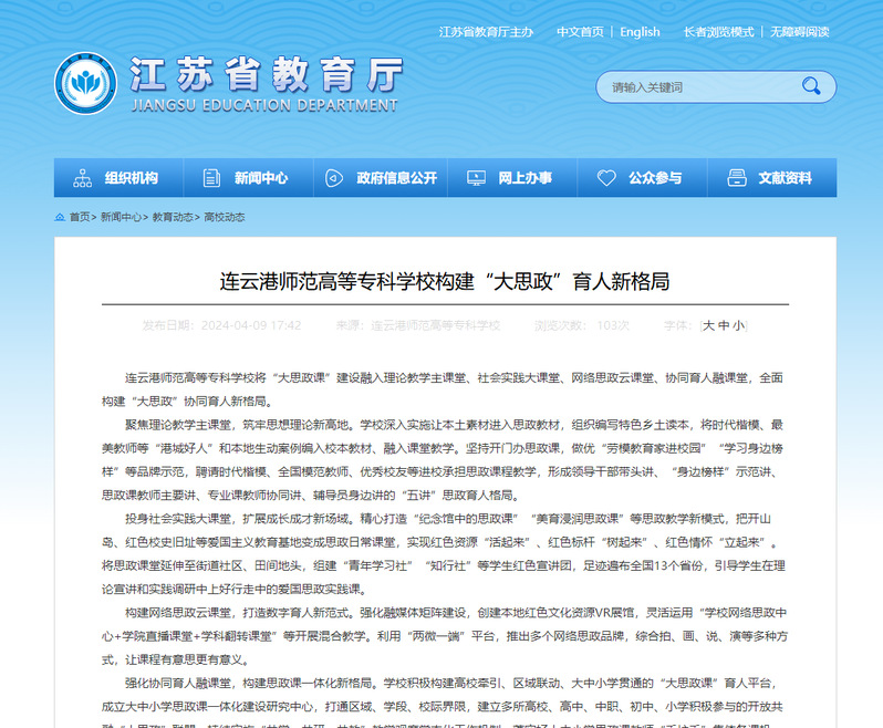【江苏省教育厅】连云港师范高等专科学校构建“大思政”育人新格局