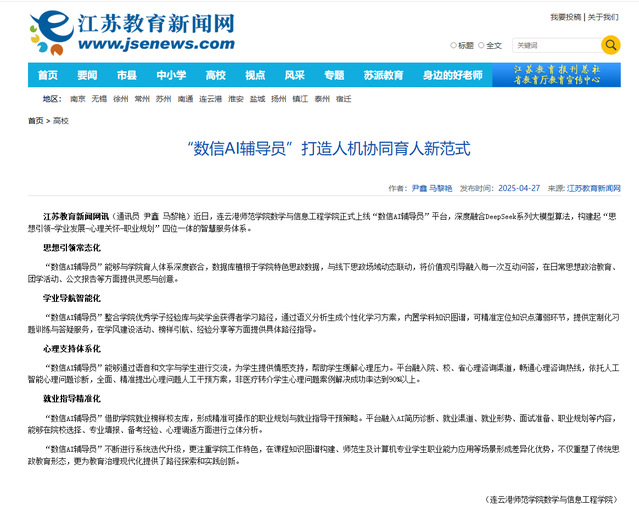【江苏教育新闻网】“数信AI辅导员”打造人机协同育人新范式